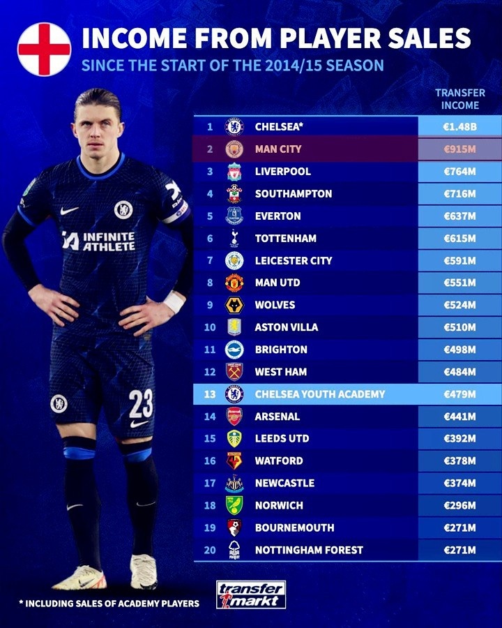 在疯狂“大撒币”的背后,曼城出售球员盈利能力同样不容低估。瓜迪奥拉挑选的球员鲜有水货,他们出售球员变现能力长期处于被低估的状态。瓜迪奥拉上任后(2016夏窗),曼城靠出售球员已经赚取了超过9亿欧元,同时期能排在英超第二位。