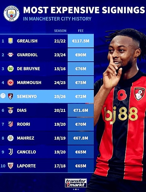 2025冬窗,曼城的引援投入超过了德甲、西甲和法甲球队的总和,但马尔穆什、胡桑诺夫、尼科·冈萨雷斯和维托尔·雷斯等人的表现均低于预期,这直接改变了蓝月军团在这个冬窗的引援思路。